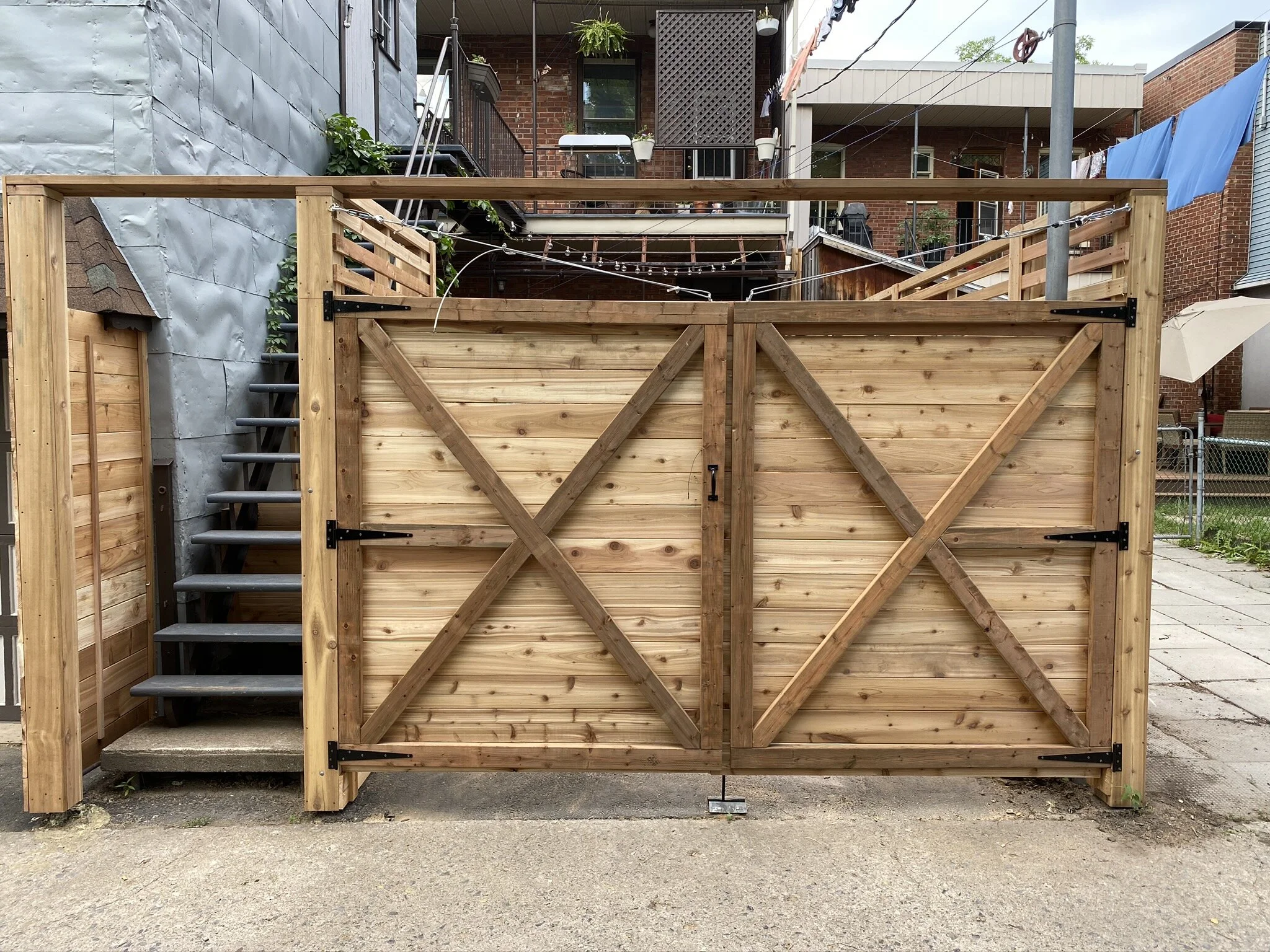 Les espaces extérieurs à Montréal manquent souvent d’intimité — voici l’exemple d’une réalisation de clôture en bois.