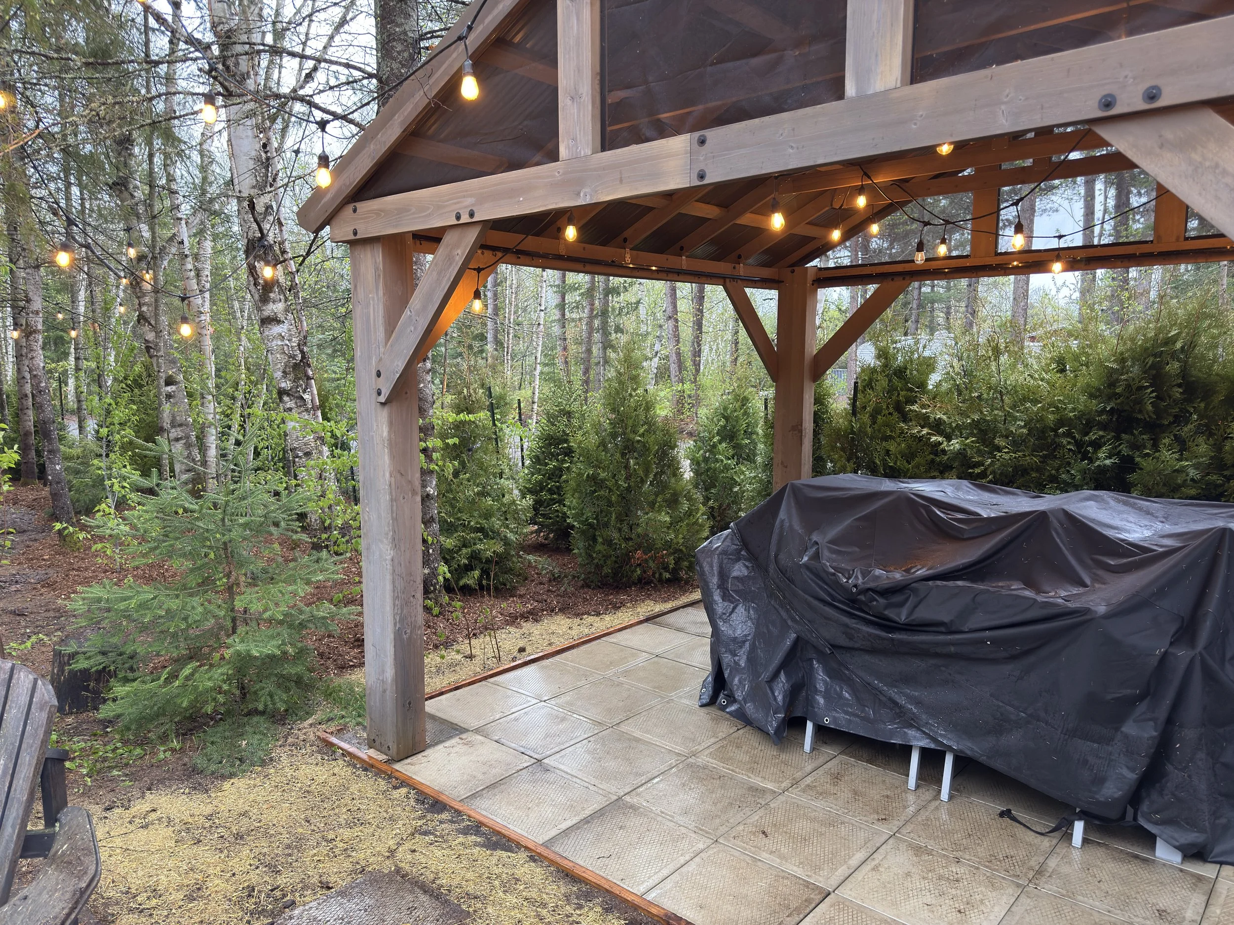 Un projet qui transforme le paysage : cèdres, pruches de l’Est et épinettes blanches s’unissent pour créer en peu de temps une ambiance naturelle, intime et vivante.